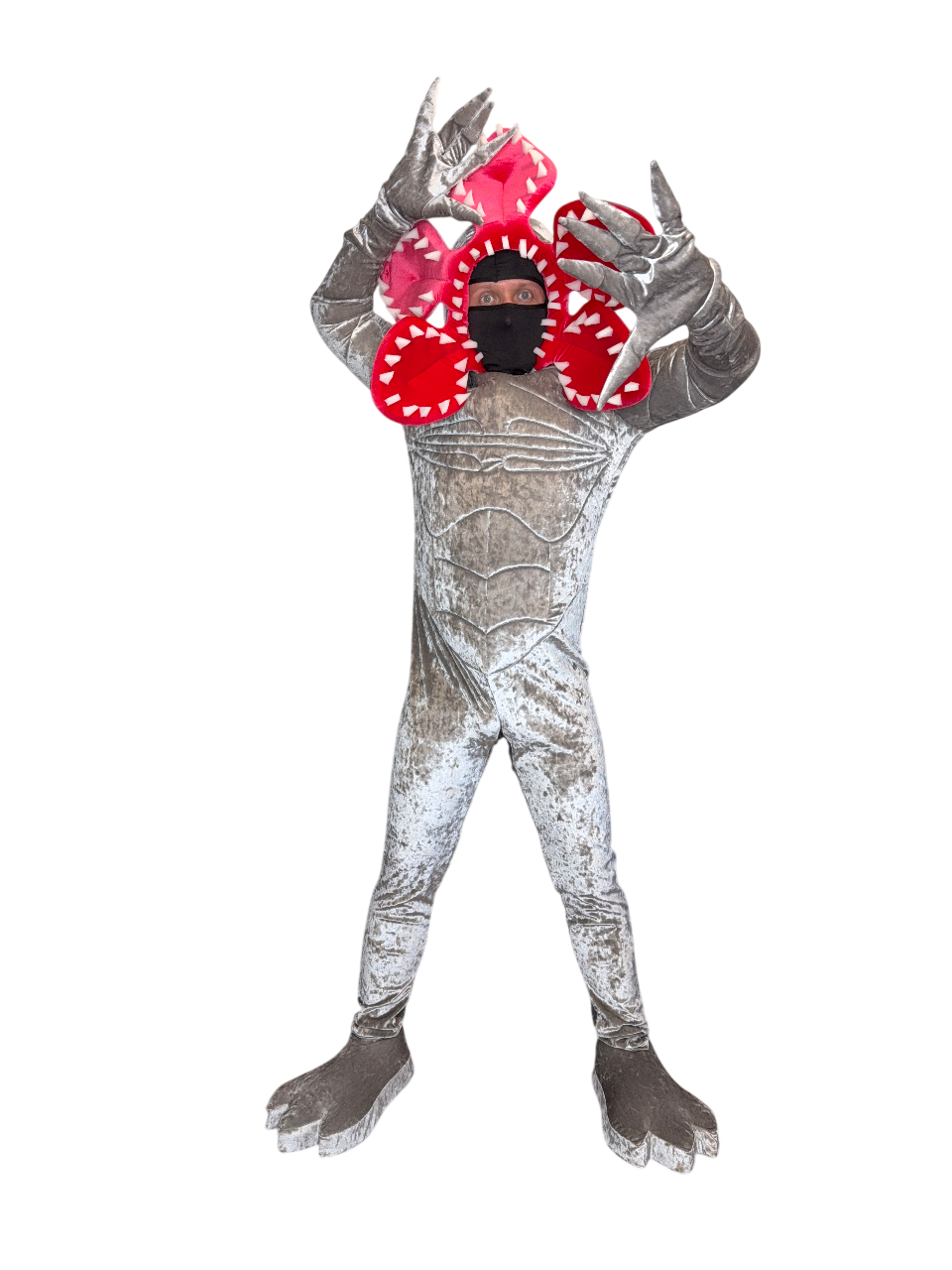 • Полное погружение в атмосферу: Реалистичный костюм, устрашающий грим и пластика движений, повторяющая повадки монстра из сериала. Ваши гости почувствуют себя героями «Очень странных дел»!